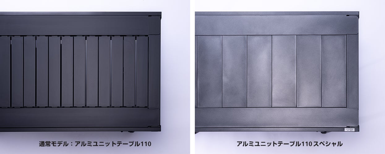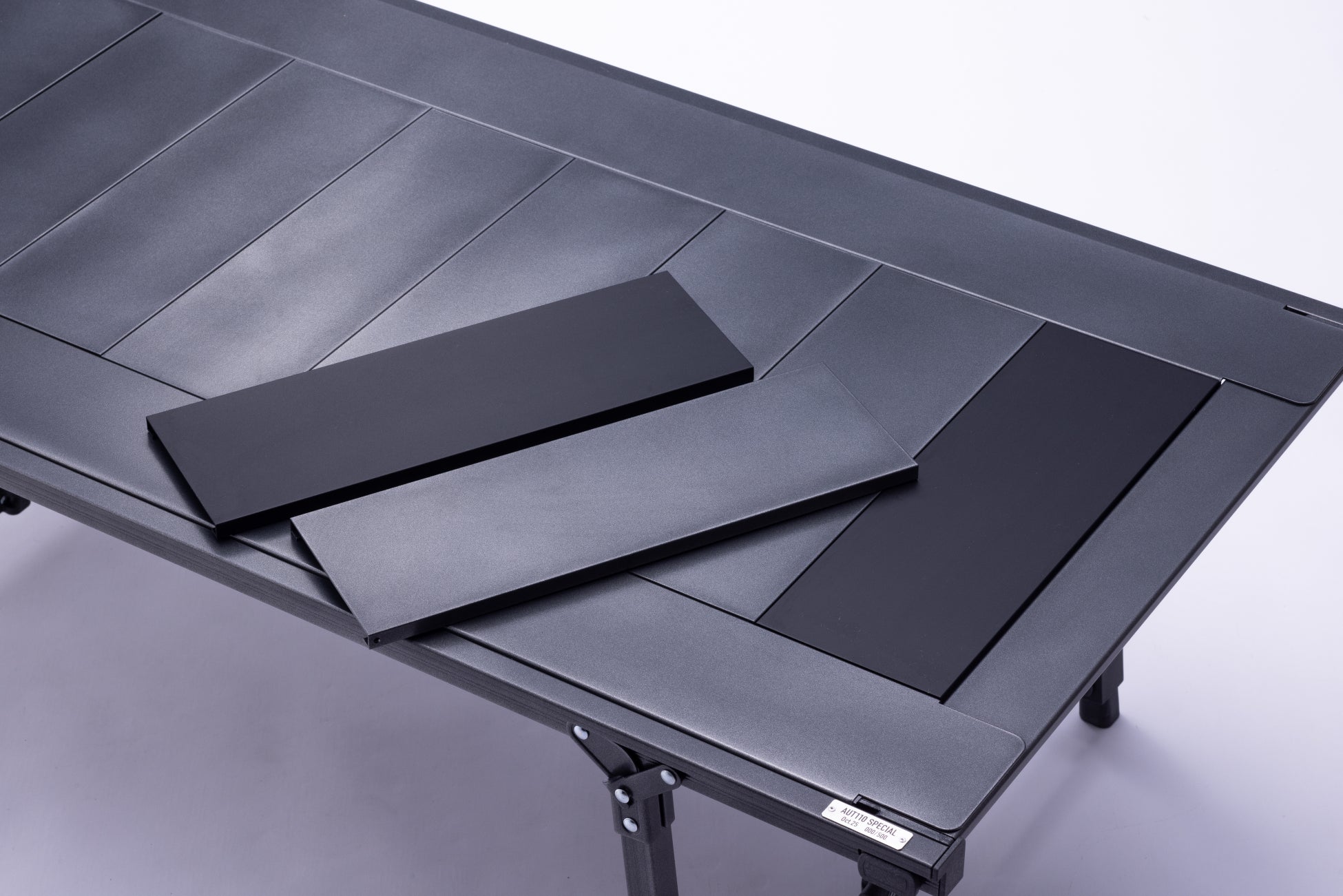 本モデルには、ブラックの「アルミ天板」を2枚付属しており、既存のアルミユニットテーブルオプションのブラックカラーに馴染むカスタマイズが可能です。(「アルミ天板」は別売でも購入可能)
