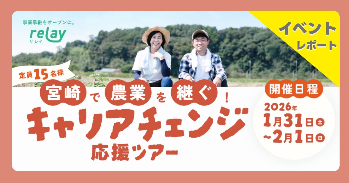 オープンネーム事業承継「relay(リレイ)」を運営する株式会社ライトライト(宮崎県宮崎市 / 代表取締役:齋藤 隆太)は、宮崎県宮崎市と連携し、事業承継や新規就農に関心を持つ参加者を対象とした現地体験型ツアー「宮崎で農業を継ぐ!キャリアチェンジ応援ツアー」を2026年1月31日(土)、2月1日(日)に開催しました。