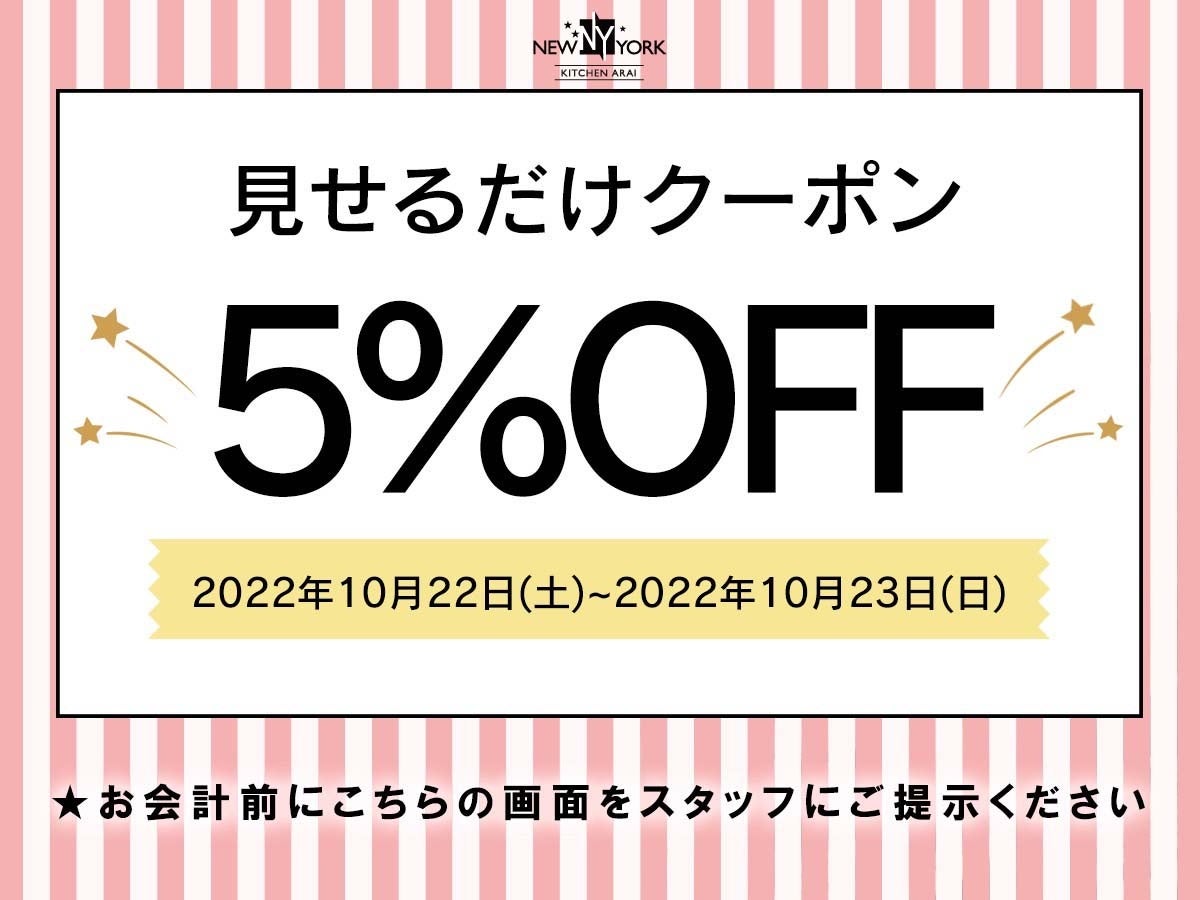 第一弾としては2022年10月22日(土)〜23日(日)の2日間限定で5%OFFクーポンを配布致します。