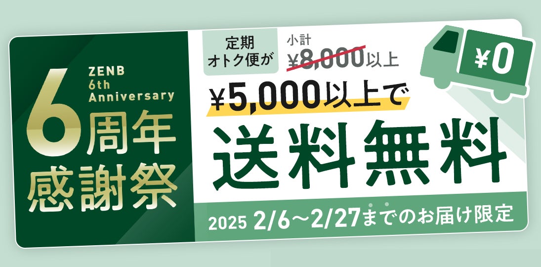 株式会社ZENB JAPAN(ゼンブ ジャパン)(愛知県半田市、以下 ZENB)は、植物を可能な限りまるごと使った食で、おいしく、カラダにも地球にもやさしいウェルビーイングな食生活を提供し続け、2025年3月5日(水)にブランド誕生から6周年を迎えます。これを記念し、日頃の感謝を込めた6大キャンペーンを2025年2月5日(水)から順次実施します。