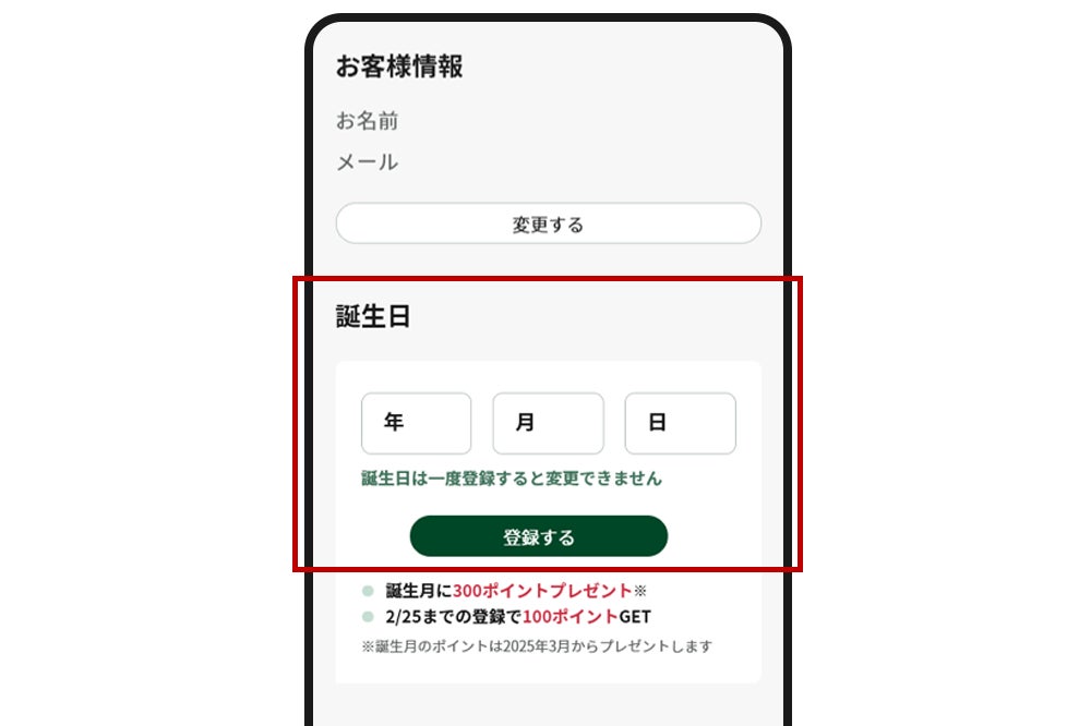 ※3 2月末~3月初旬に付与予定です。以前、誕生日を登録されたお客様も改めて登録をお願いします。
