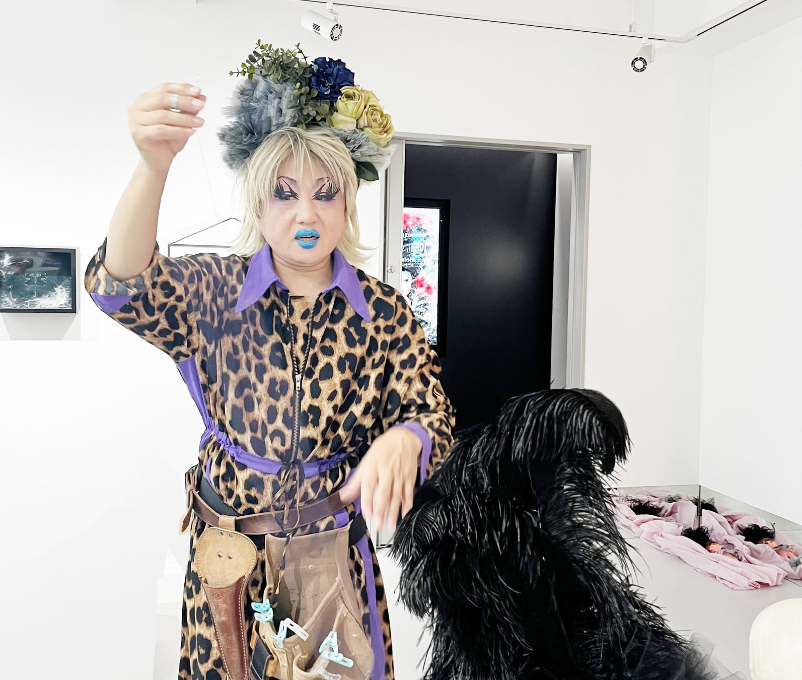 また、ヴィヴィアン佐藤の象徴的なスタイルのひとつである「ヘッドドレス」を制作する特別ワークショップも実施されました。参加者たちは、アーティスト本人によるレクチャーのもと、ヴィヴィアン佐藤ならではの独創的な美意識や素材の組み合わせ方に触れながら、世界にひとつだけのヘッドドレスづくりに挑戦。