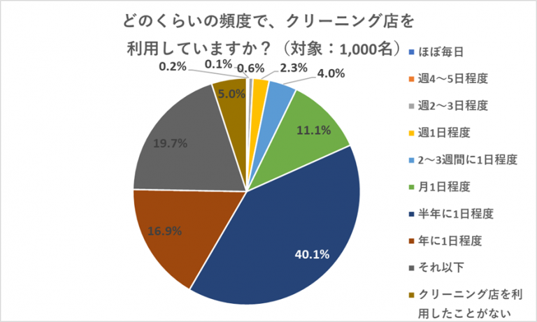 - クリーニング店を利用する頻度は、「半年に1日程度」が4割