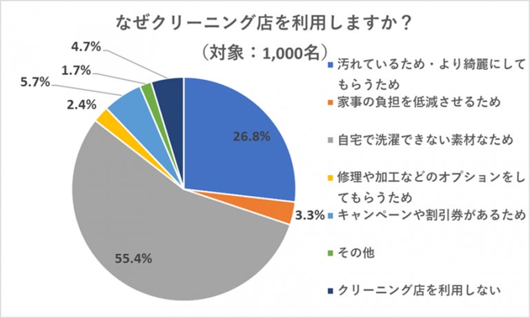 - クリーニング店を利用する理由は「自宅で洗濯できない素材なため」が最多