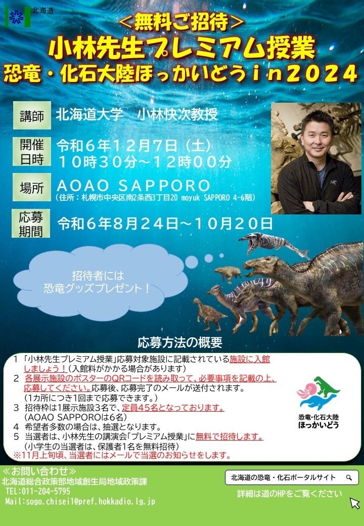 <無料ご招待>「小林先生プレミアム授業」恐竜・化石大陸ほっかいどうin 2024の開催について