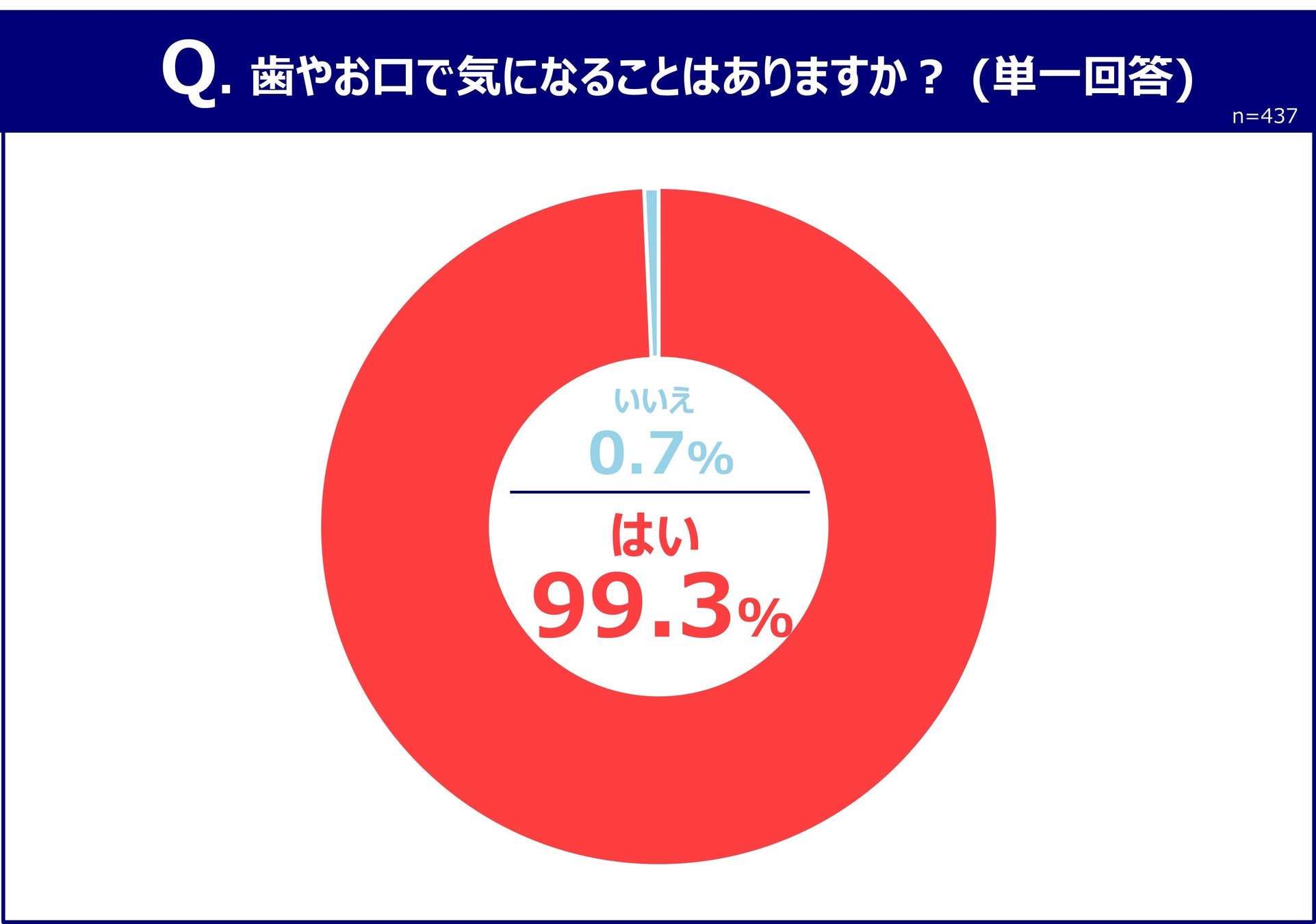 ⇒なんと、99.3%が歯やお口で気になることがあると回答!