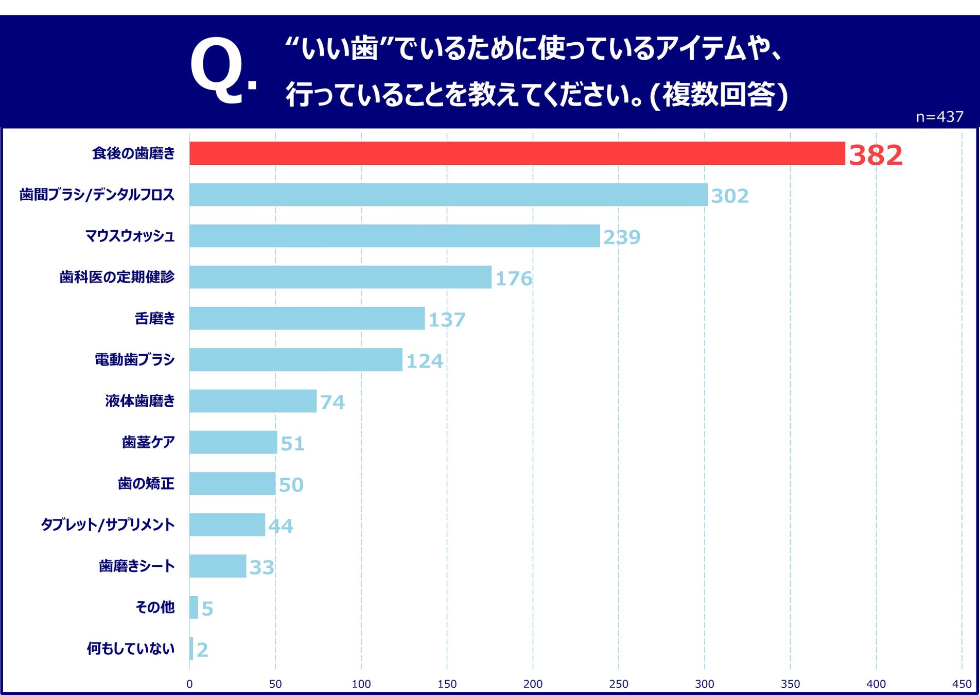 Q.“いい歯”でいるために使っているアイテムや行っていることを教えてください。 (複数回答)