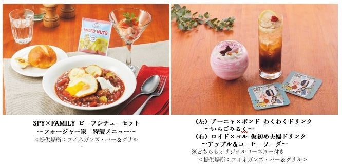フォージャー家をイメージした心あたたまるスペシャルセット「SPY×FAMILY ビーフシチュー セット~フォージャー家 特製メニュー~」がパーク限定でみなさんの目の前に登場します。少し崩れた目玉焼きがヨルならではのビーフシチューをメインに、料理上手のロイドをイメージしたおしゃれな カクテルグラスに入った前菜。そして、アーニャの大好きなピーナッツが添えられた特別なセットメニューです。一品一品、キャラクターたちをイメージしたメニューで、「ユニバーサル・スタジオ・ジャパン」が創り出す、「SPY×FAMILY」の世界にまるごと“超没入”できる体験をお楽しみください。また、愛らしいアーニャとボンドをイメージした「アーニャ×ボンド わくわくドリンク~いちごみるく~」や、ノンアルコールカクテル「ロイド×ヨル仮初め夫婦ドリンク ~アップル&コーヒーソーダ~」など、キャラクターたちの個性をまるごと楽しめるオリジナルドリンクも是非ご賞味ください。