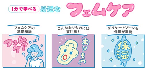 本イベントでは、特設サイトにてフェムケアについての基礎知識をはじめ、デリケートゾーンの正しいニオイケアや注意すべきおりものの変化、20代から鍛えるべき骨盤底筋トレーニングについてコラム形式でご紹介するほか、フェムケアについて見て学べる動画など、フェムケアについて知らない方でも楽しく学べるコンツをご用意しています。