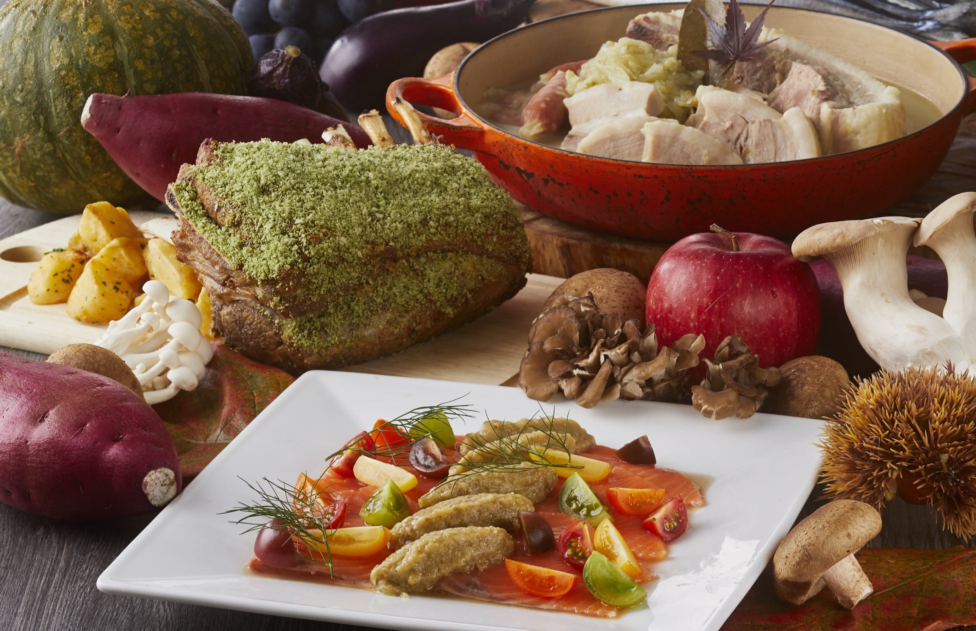 「仔羊肉のロースト サルサヴェルデ」「鶏もも肉と栗のバルサミコソテー」「するめ烏賊のスパイシー焼き」「アルザス風シュークルート」「チーズフォンデュ」「いろいろ茸のブルゴーニュ風」「アッシェ パルマンティエ」「さつま芋のオレンジ煮」「さつま芋のフリット」「秋刀魚の梅煮」「秋鮭のハーブ焼き オニオンソース」「鶏ごぼうの炊き込みご飯」「茸そば」「アゴーラ黒カレー」「カレー(甘口)」「点心」「かぼちゃスープ」「根菜汁」「チキンフリット」「ポテトフライ」