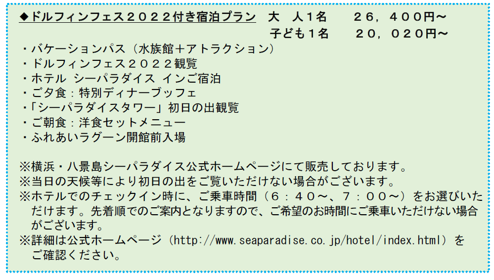 また、大晦日のシーパラダイスは延長営業をいたします。楽しいイベントが盛りだくさんの水族館や多彩なアトラクションを、大晦日スペシャルパスで思う存分お楽しみください。