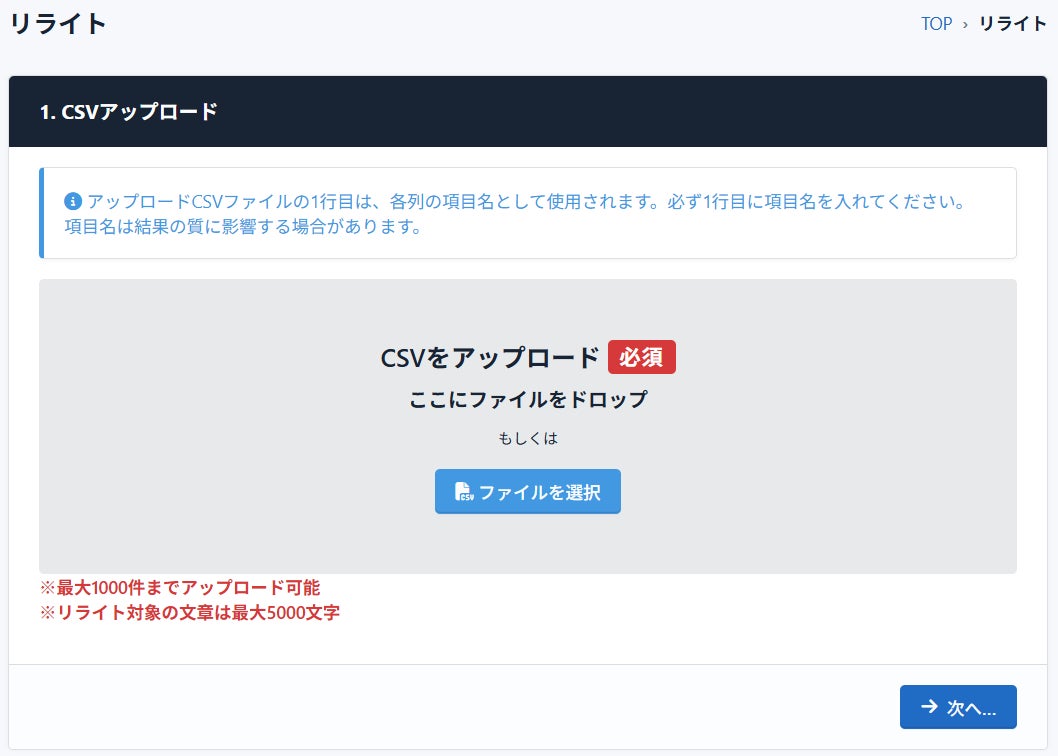 これまでリライト(一括生成)で入力できる文字数は最大1,000文字の制限がありましたが
