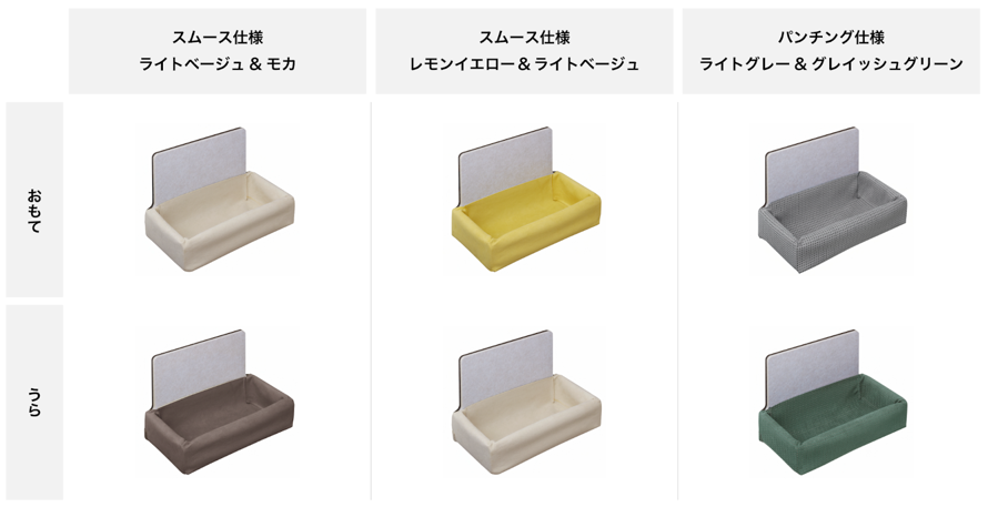 リバーシブルな生地カラーのバリエーションは3タイプ