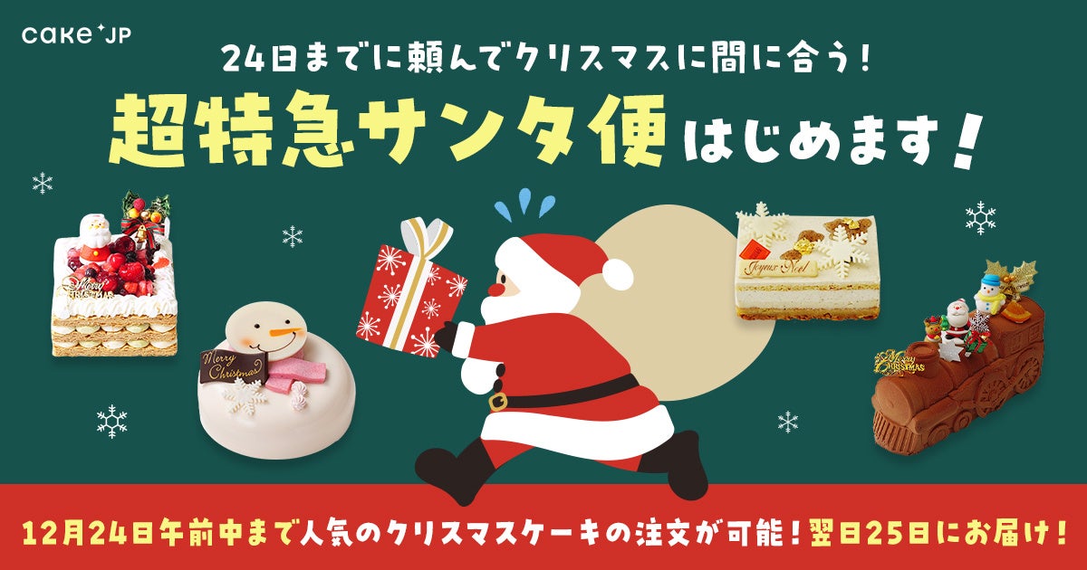 まだ間に合う!予約を忘れていても大丈夫!クリスマスイヴまでのご注文で、Cake.jpの人気クリスマスケーキをクリスマス当日にお届けする「超特急サンタ便」をスタート!