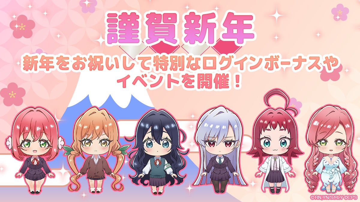 1月1日(木)より新年をお祝いして「お年玉ログインボーナス」と「お正月ログインボーナス」を開催しました。「【お正月】羽香里・唐音ピックアップガチャチケット」や「ジューンブライドガチャチケット」などの豪華アイテムを獲得できますので、ぜひご参加ください!
