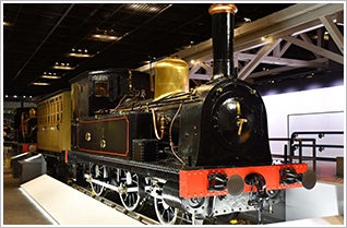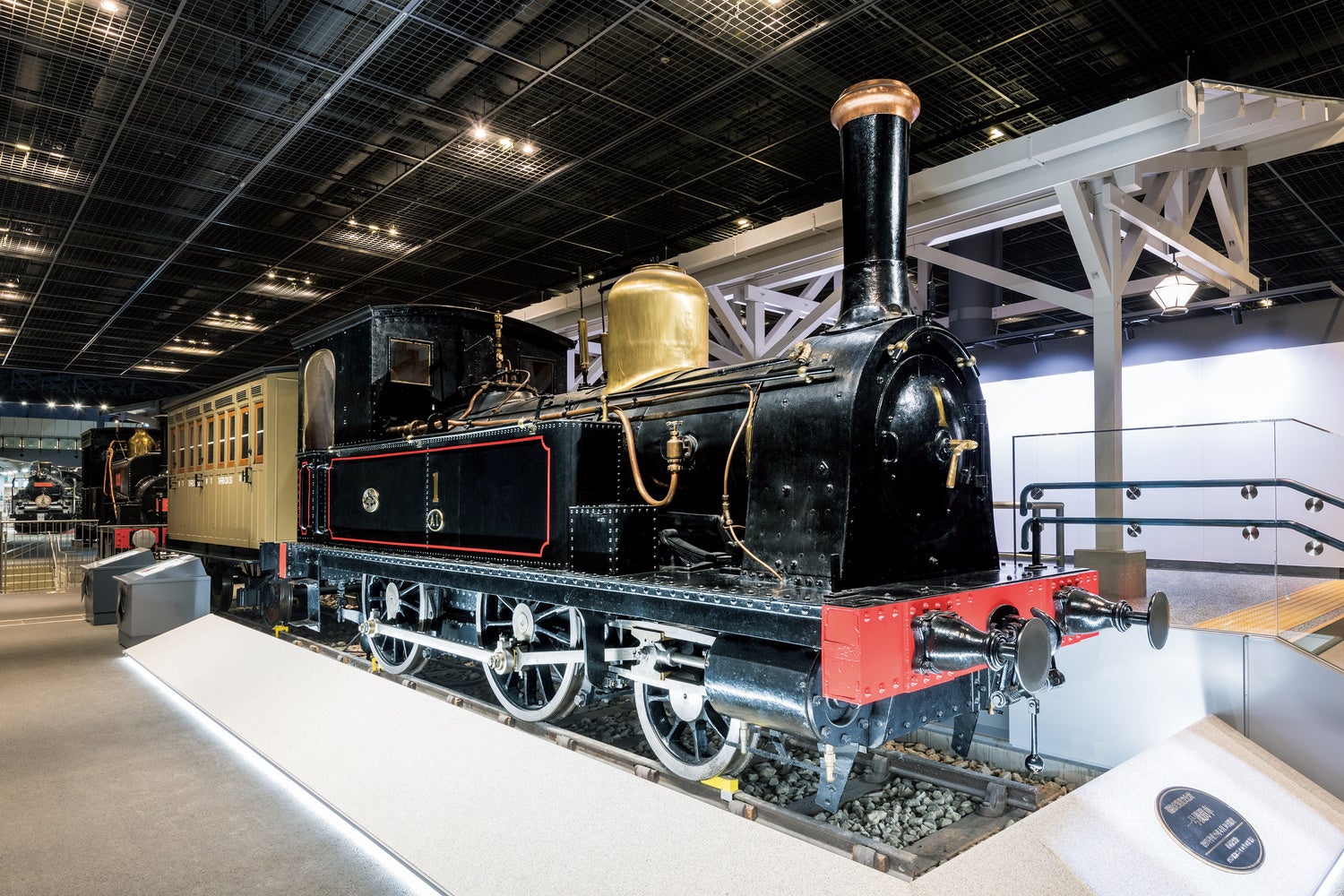 1871(明治4)年製造。新橋~横浜間の鉄道開業時に際し、イギリスから輸入された蒸気機関車のうちの1両。国鉄で使用ののち島原鉄道をへて、1936(昭和11)年から鉄道博物館(初代)で展示。1997(平成9)年に鉄道車両として初めて国の重要文化財に指定。現在はさいたま市の鉄道博物館に展示されています。