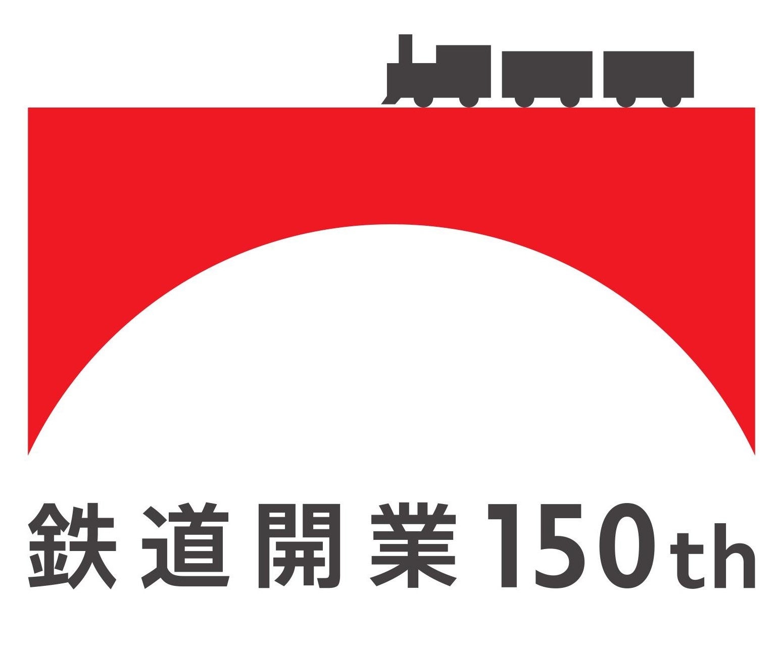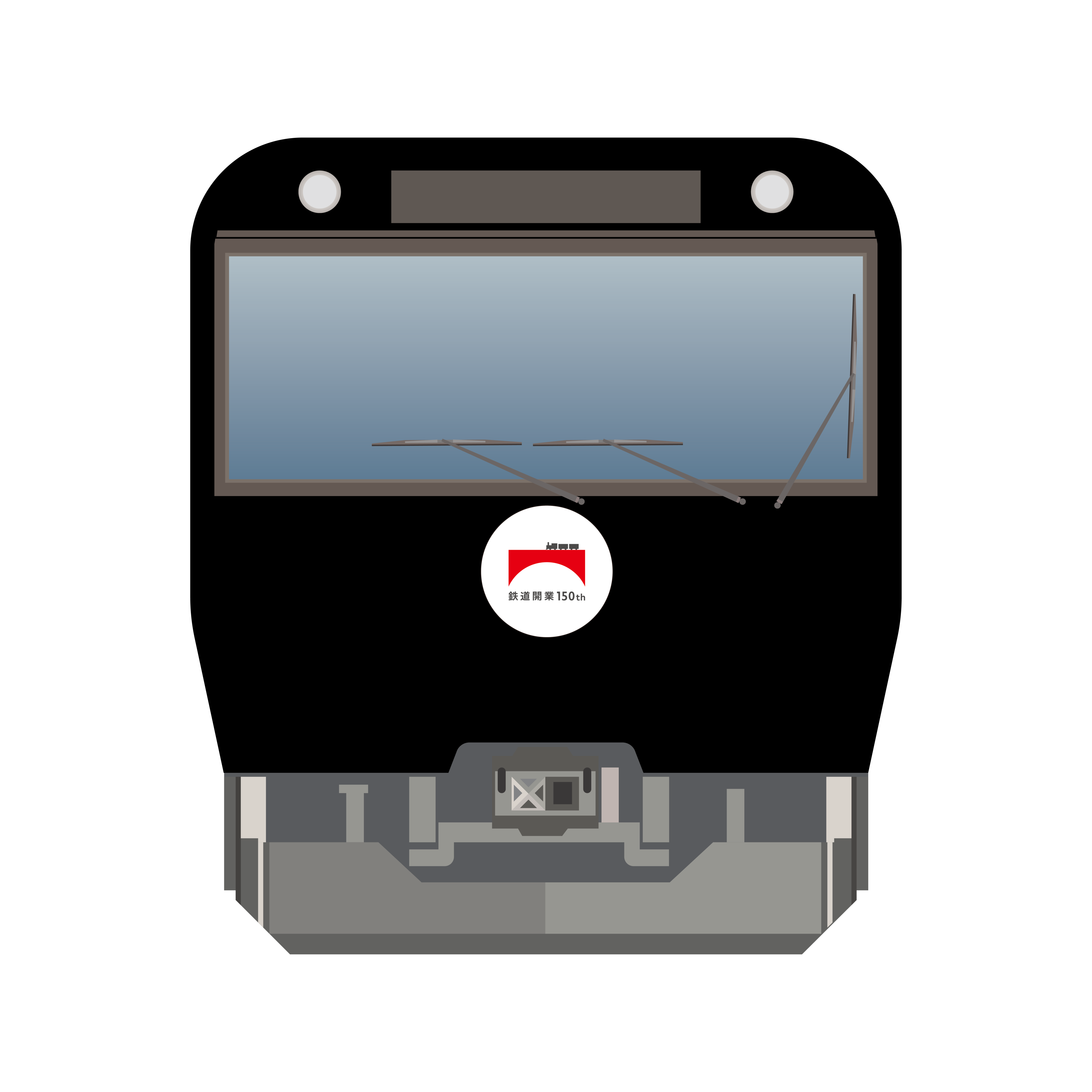 ・ヘッドマークと車体の各部には鉄道開業150年の記念ロゴをあしらいます。