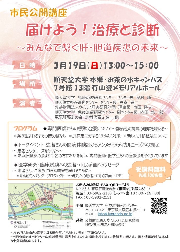 順天堂大学 免疫治療研究センターが市民公開講座「届けよう!治療と診断 ~みんなで繋ぐ肝・胆道疾患の未来~」を開催