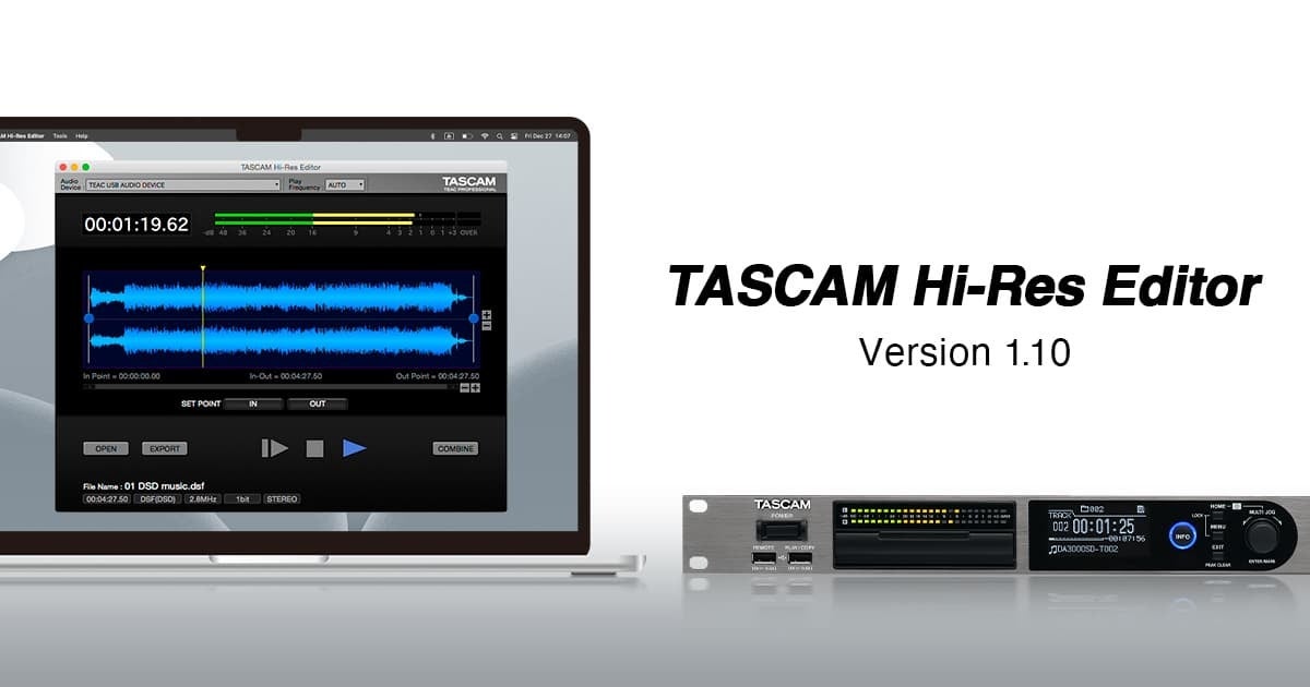 ステレオマスターレコーダー『DA-3000SD』の音源編集に最適なDSDネイティブ編集ソフトウェア『TASCAM Hi-Res Editor』(無償)がポリ/モノ変換機能の追加や最新OSに対応