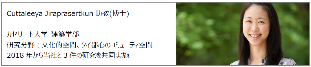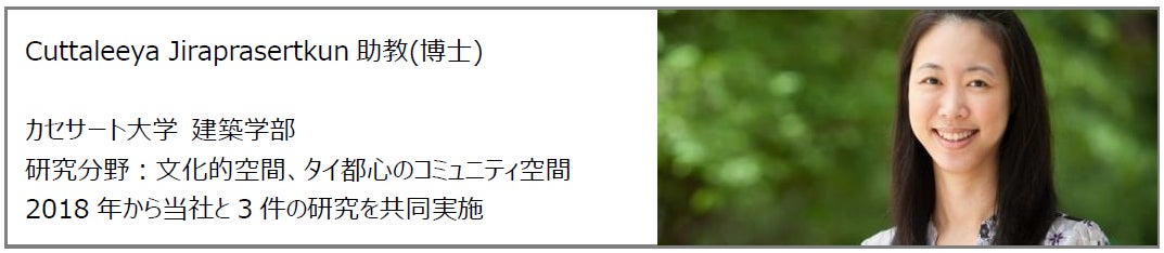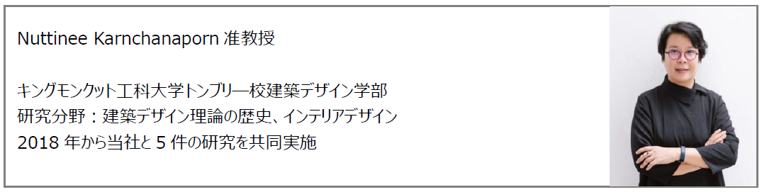 タイにおける研究結果は既に当社の海外事業案件の商品企画へと反映されており、商品価値の向上に貢献しているほか、大学からの表彰や、デザインガイドラインの策定などの成果に繋がっております。
