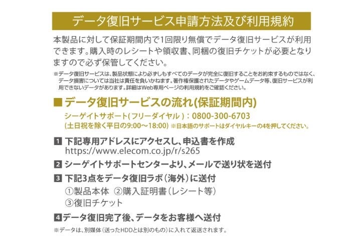 エレコム株式会社(本社:大阪市中央区、取締役社長:柴田幸生)は、世界最大級のHDDメーカーのシーゲイトが自ら開発した、データ復旧サービス付きで接続も簡単な世界品質の外付けHDDを3月上旬より新発売いたします。