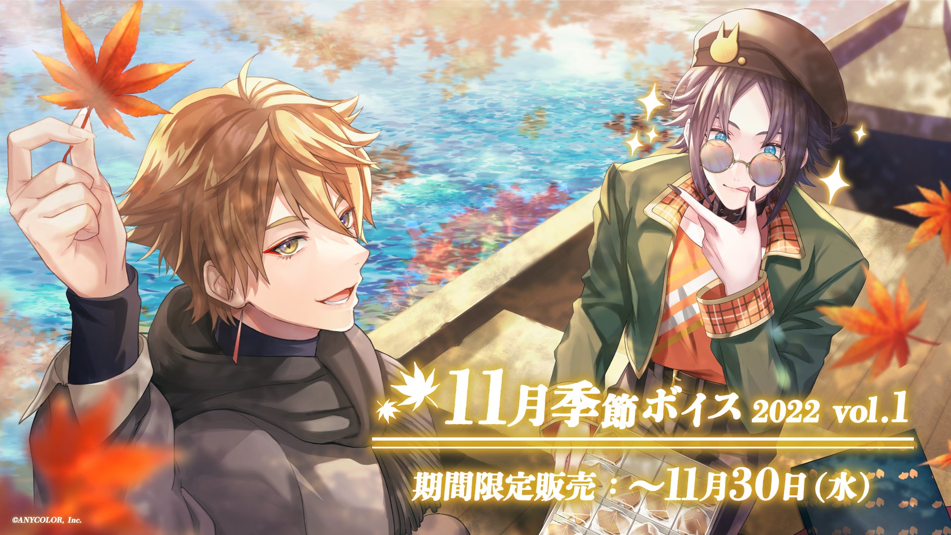 ANYCOLOR株式会社(本社:東京都港区 代表取締役:田角陸、以下「当社」)が運営するVTuber/バーチャルライバーグループ「にじさんじ」は、「にじさんじ11月季節ボイス2022 Vol.1&Vol.2」を2022年11月1日(火)11時より、にじさんじオフィシャルストア・NIJISANJI EN Official Storeにて販売を開始いたします。