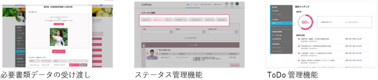 URL: https://linku-s.com/Linkusは、外国籍人材の雇用・管理をすべて一気通貫してサポートするSaaS型越境HRプラットフォームです。 今までの煩雑な作業や連絡・情報のやり取りなどを、デジタル化して一元管理が可能。日本で働きたい外国籍人材と受け入れ企業、そして支援団体と送り出し機関の全関係者をテクノロジーで繋ぎ、国境を越えたシームレスな外国籍人材雇用・管理をご提供しております。Linkusの由来は「繋がり」。企業や団体・組織を繋ぎ、全体での可視化を図ることで外国籍人材雇用の促進を目指すサービスを展開しています。