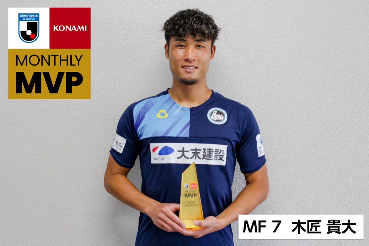 【FC大阪】木匠 貴大 選手、9月度「2023明治安田生命Jリーグ KONAMI 月間MVP」受賞のお知らせ