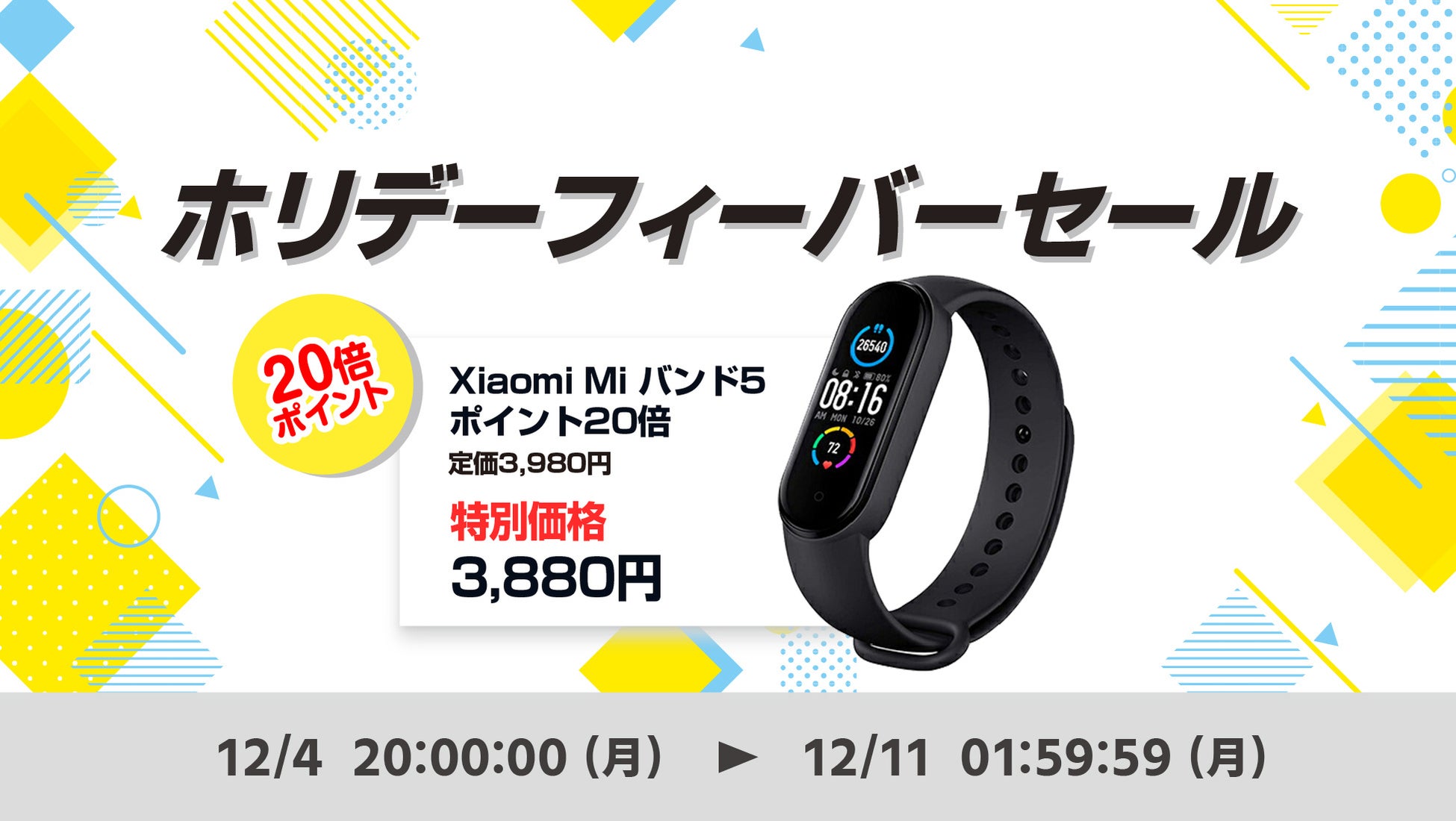 楽天市場「Show !t」は12月4日(月)20時から、ポイント20倍プレゼント!シャオミのMiバンド5を通常価格3,980円(税込)のところ3,880円(税込)の特別価格で販売します。また、12月4日(月)20:00~12月11日(月)01:59まで開催される、楽天お買い物マラソンに参加し、全商品ポイント10倍プレゼント(一部商品を除く)を実施します。この機会にシャオミのスマートバンドMiバンド5でポイントをザクザク貯めましょう。