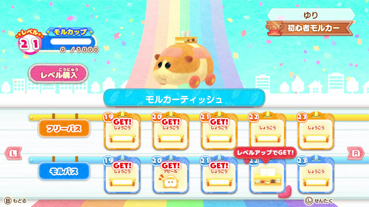 ※無料アップデートを適用するには、インターネット環境が必要です。※『モルサッカーオンライン』『モルサッカーオンライン Lite』をプレイするには、インターネット環境およびNintendo Switch Online(有料)への加入が必要です。※『モルサッカーオンライン Lite』のセーブデータのアップロードおよび引き継ぎは1度ずつしかできませんので、ご注意ください。※『モルサッカーオンライン Lite』から製品版へセーブデータの引き継ぎをした場合、『モルサッカーオンライン Lite』で購入した追加コンテンツも引き継がれます。ただし同じコンテンツを製品版でも購入することができますので、重複購入にご注意ください。 ※詳細は公式サイトをご確認ください。※バトルパスの最大レベルは50になります。 レベルアップをご購入の際は、ご購入前に現在の『レベル』をご確認 のうえで、ご購入ください。※バトルパスのレベルは次のシーズンには引き継がれません。※報酬はすべてゲーム内アイテムです。実際に付属する商品ではございません。 ※アクセサリーは一部モルカーには装着できません。