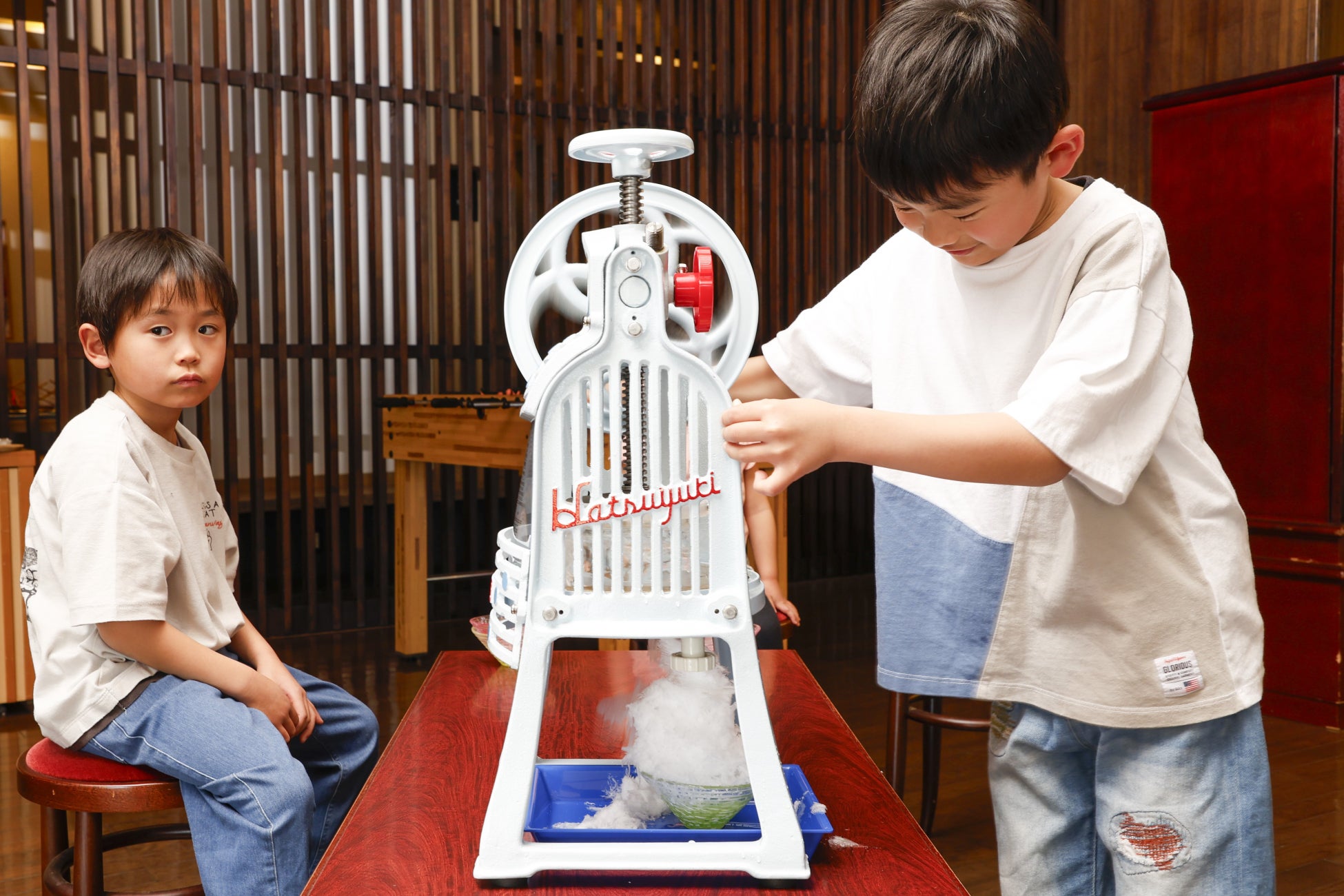 「メルキュール高知土佐リゾート&スパ」では、昔ながらの手動かき氷機を使ったかき氷体験をお楽しみいただけます。シロップは定番の「いちご」に加え、果皮入りシロップで食感と風味が楽しめる「レモン」、高知の名産ゆずを使った爽やかな「ゆず」、そして「100年フード(*1)」に選ばれ、地元の芸西村で生産される「白玉糖」を使った「抹茶きな粉」の全4種類からお選びいただけます。
