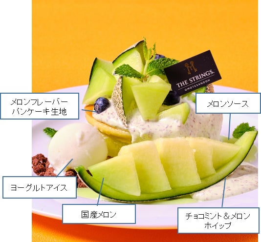 香り高い国産のフレッシュなメロンを、パンケーキの間とトップ、サイドにも添えたメロン尽くしの一皿です。