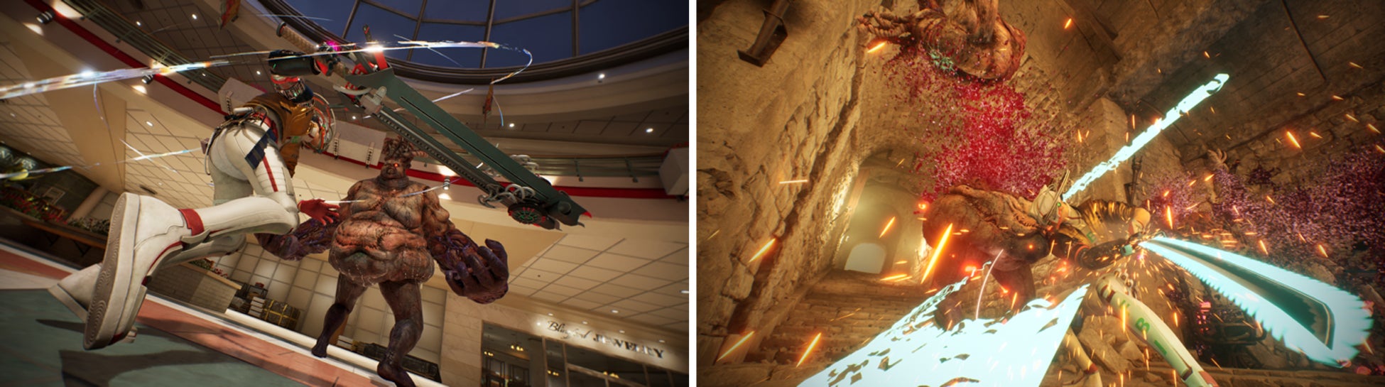 ロミオは銃と剣、いわゆる銃剣武器を持ち替え、頓知の利いたレベルデザインに仕込まれた敵を風車の理論で蹴散らしていく「ブラッディアクション」を発動させ、宇宙をも崩壊させかねないカタルシスとほとばしる熱いパトスに満ちたバトルを展開!