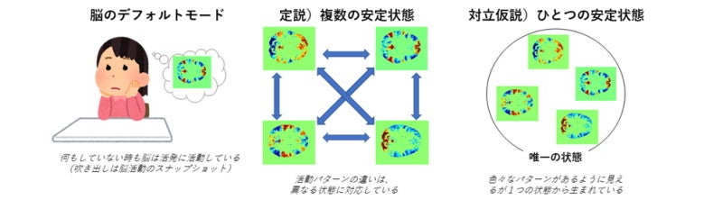 - 今回、統計的モデリングにより、脳のデフォルトモードについての定説が間違いである可能性が分かりました。