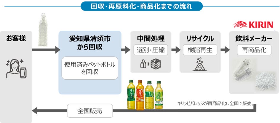 キリングループは、2020年2月に社会と企業のレジリエンス強化へ向けた新たなビジョン「キリングループ環境ビジョン2050」を策定し、「容器包装を持続可能に循環している社会」を目指すことを宣言しています。また「キリングループ プラスチックポリシー」では、2027年までに日本国内におけるPET樹脂使用量の50%をリサイクル樹脂にすること掲げています。今回、愛知県清須市において排出される使用済みペットボトルを、当社が「ボトルtoボトル」水平リサイクルで安定的にペットボトルとしてリサイクルすることで、持続可能な循環型社会の実現に貢献できると考え、本協定の締結に至りました。本協定により、年間約40トンのペットボトルを水平リサイクルできる見込みです。