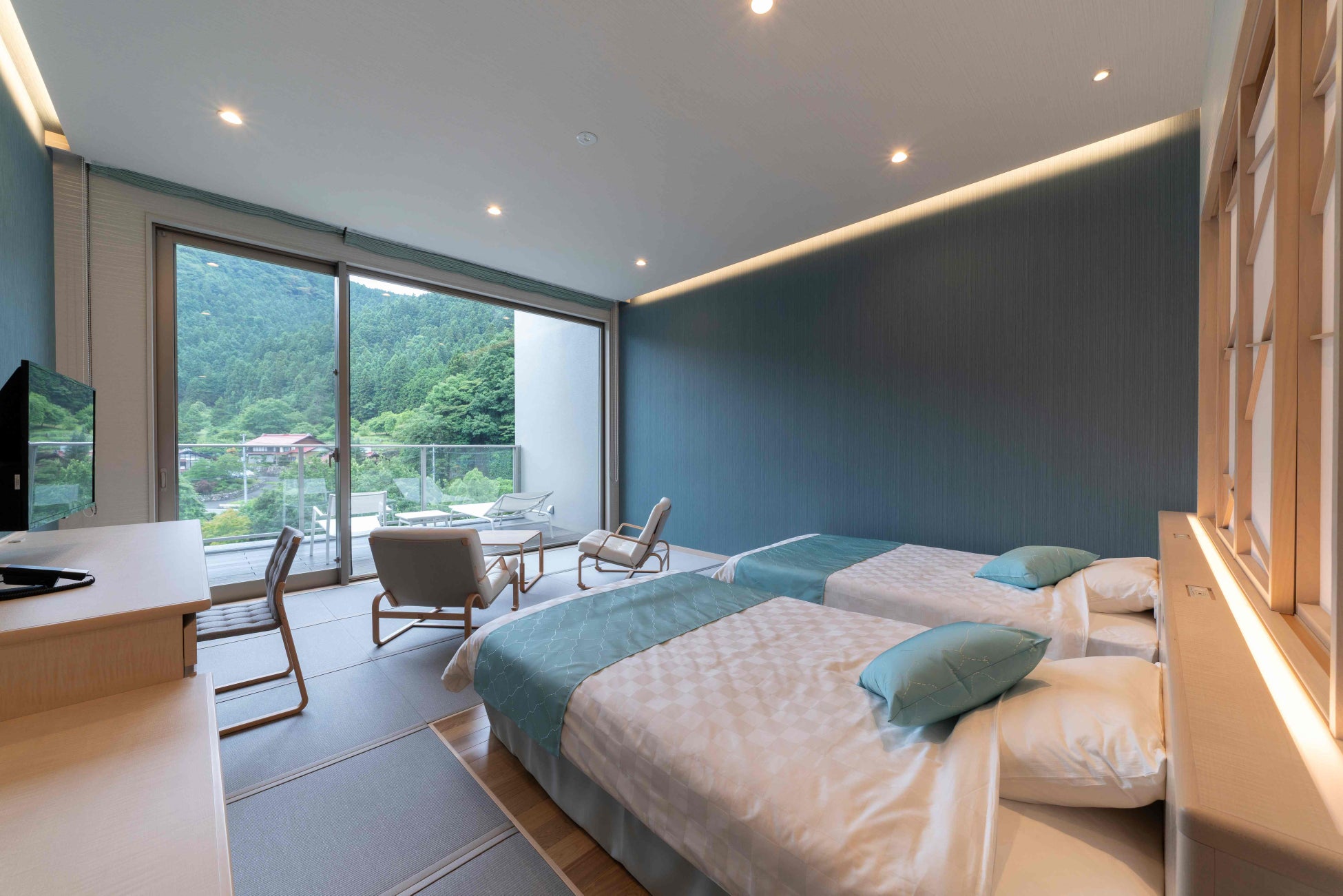 埼玉県飯能市西部、高麗川の清流に囲まれ、里山の風景が色濃く残る自然豊かな場所に建つリゾートホテル。2018年には新館「にしかわ館」を増築し、浴室やレストランもリニューアルしてグランドオープンしました。「ムーミンバレーパーク」のオフィシャルホテルとして「ムーミンスペシャルルーム」も販売。夕食後には「月と星のテラス」で開催する「スタービューイング」や、土曜日に開催する「朝ヨガ」「週末焚火倶楽部」などの体験プログラムも人気です。