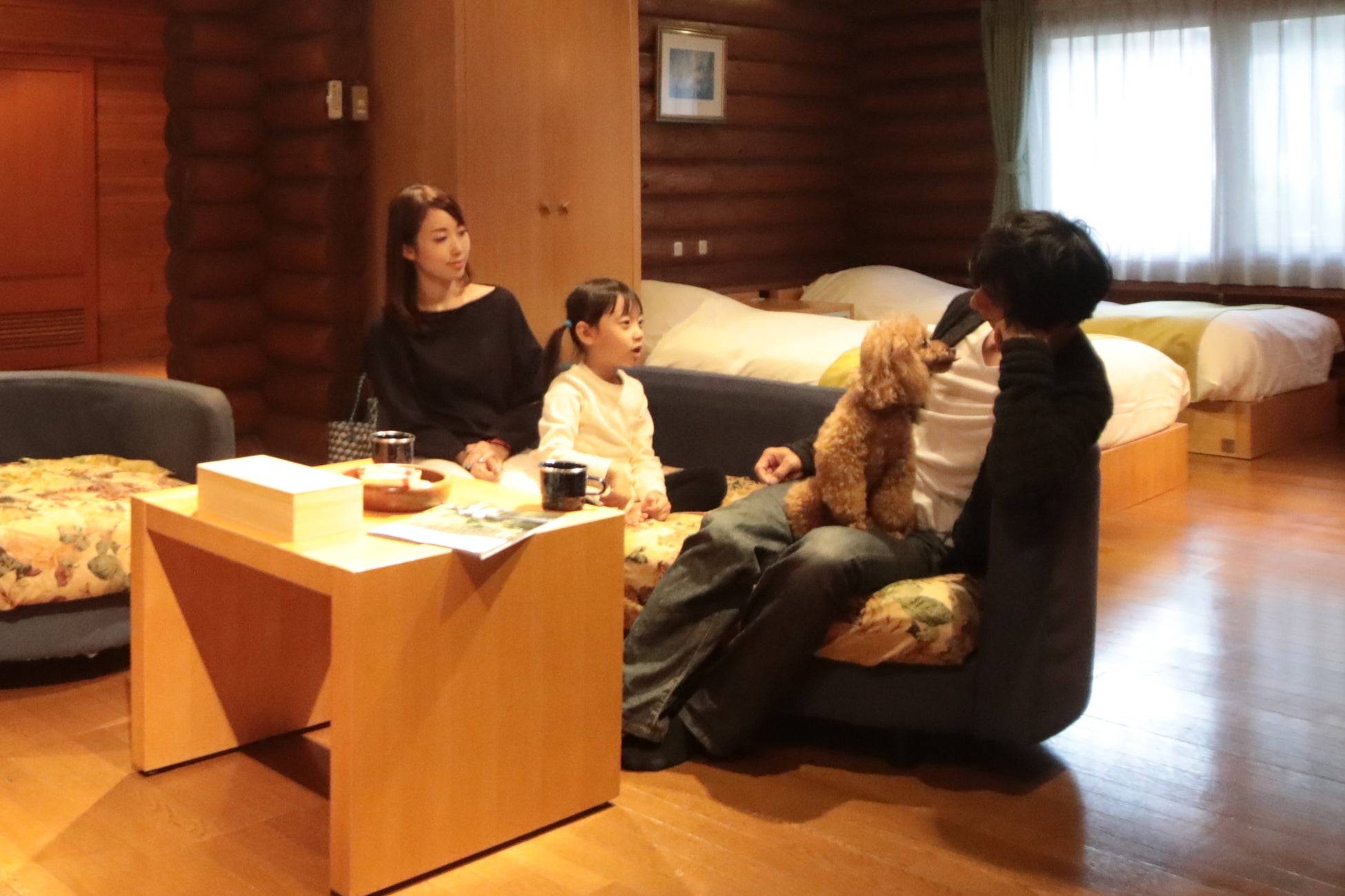 旅先でワンちゃんもぐっすり熟睡できる「ペットラウンジ」をご用意 休暇村奥武蔵では11月1日の「犬の日」にちなんで、ワンちゃんと泊まれるログハウス限定のお得な宿泊プランを販売します