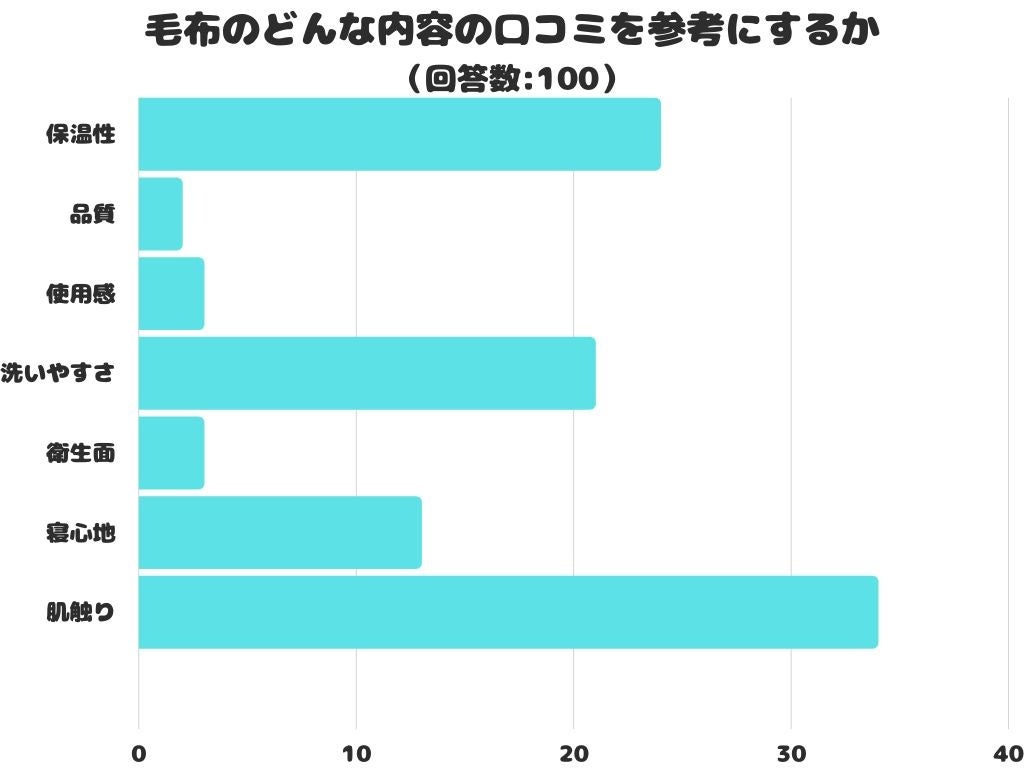 毛布のどんな内容の口コミを参考にするかをアンケートにて調査したところ、1位は「肌触り」でした。