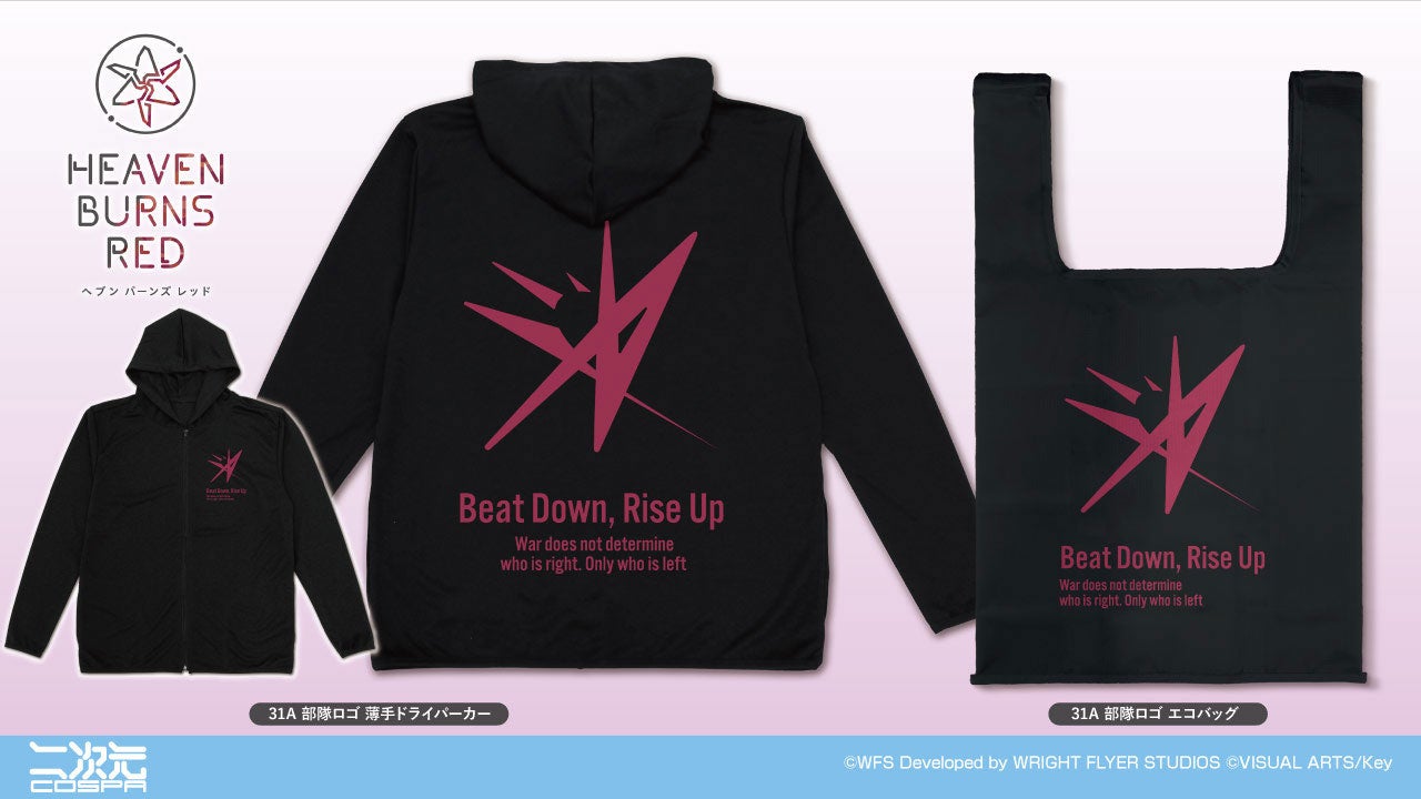 『ヘブンバーンズレッド』より「第31A部隊」ロゴをデザインした薄くて軽く、速乾性&紫外線防止効果を持つドライパーカー、そして同じく部隊ロゴがデザインされたコンパクトに畳めるエコバッグが登場。