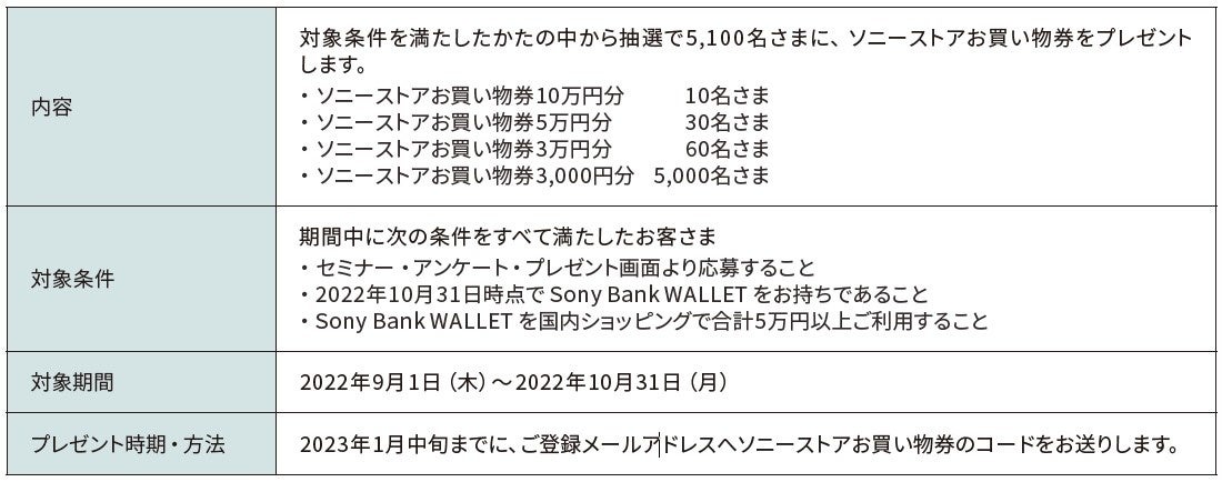 ソニー銀行株式会社(代表取締役社長:南 啓二/本社:東京都千代田区/以下 ソニー銀行)は、2022年9月1日(木)より、「Sony Bank WALLET 発行100万枚突破記念」キャンペーンを実施しますのでお知らせいたします。