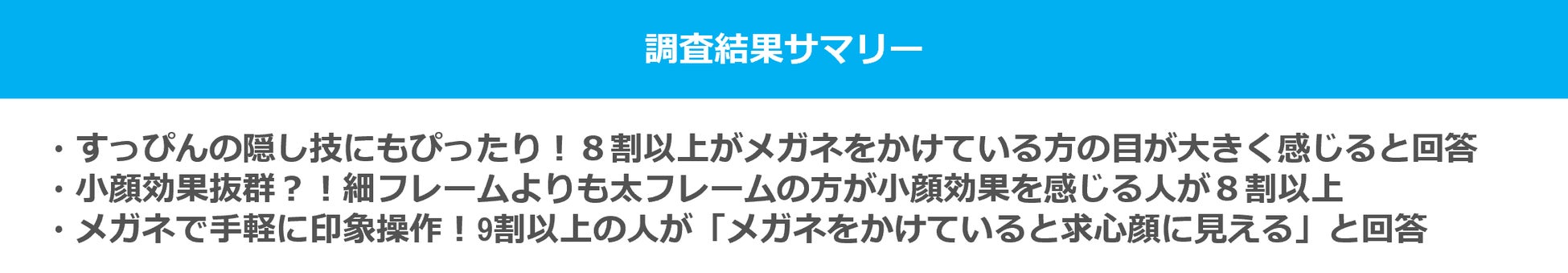 - メガネで手軽に印象操作!9割以上の人が「メガネをかけている方が求心顔に見える」と回答