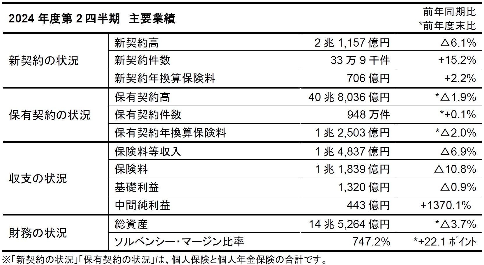 メットライフ生命保険株式会社(代表執行役 会長 社長 最高経営責任者 ディルク・オステイン)の2024年度第2四半期(2024年4月1日~2024年9月30日)の業績をお知らせします。