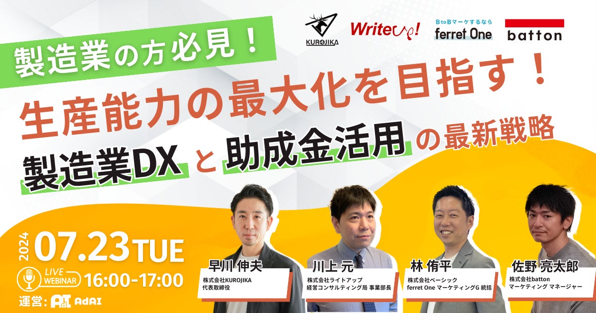 ベーシック、7/23(火)16時よりAdAI社主催のイベント「生産能力の最大化を目指す! 製造業DXと助成金活用の最新戦略」に登壇