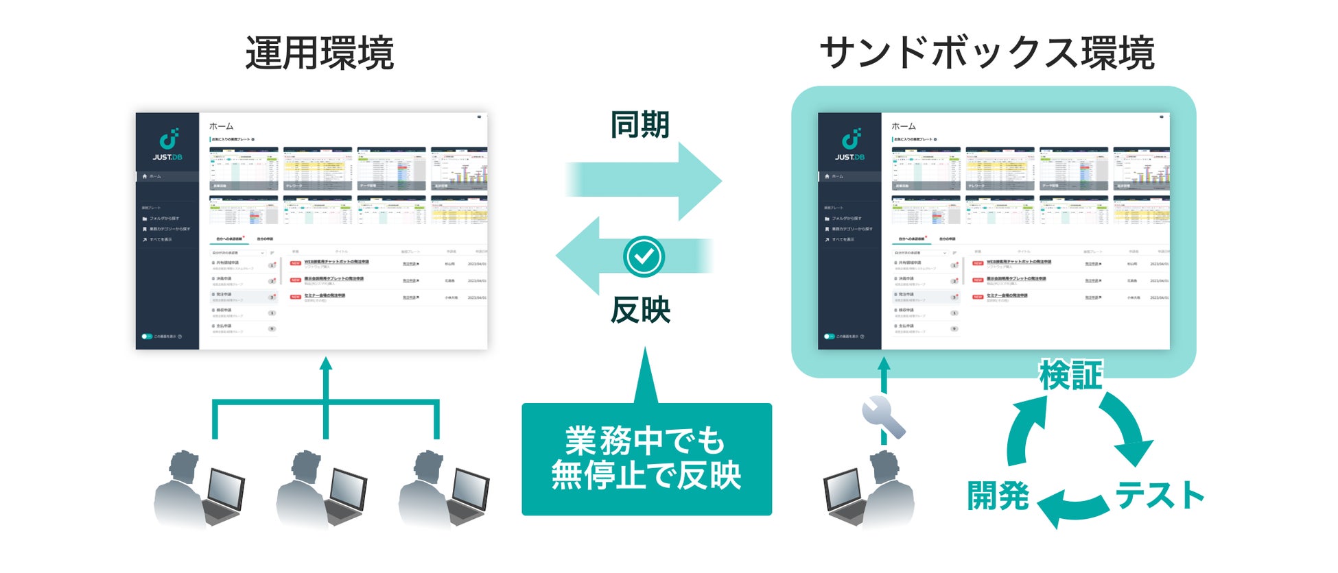 ■業務を止めることなく安全にシステムの開発が行える「サンドボックス」機能