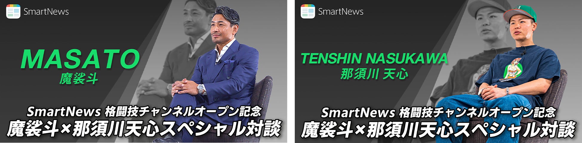 スマートニュース株式会社(東京都渋谷区、代表取締役:鈴木健)は、自社が開発・提供するニュースアプリ「SmartNews」にて、格闘技にまつわる公式情報や最新関連ニュースを集約する専用チャンネル「格闘技チャンネル」を、新たに開設しました。本チャンネル開設を記念して、魔裟斗と那須川天心、それぞれのインタビューをSmartNews にて期間限定で無料配信します。また、魔裟斗と那須川天心のスペシャル対談企画も開催。『THE MATCH』の裏側など本邦初となる2 人のクロストークを2022 年9 月9 日(金)の夜にそれぞれのYouTube で限定初公開します。
