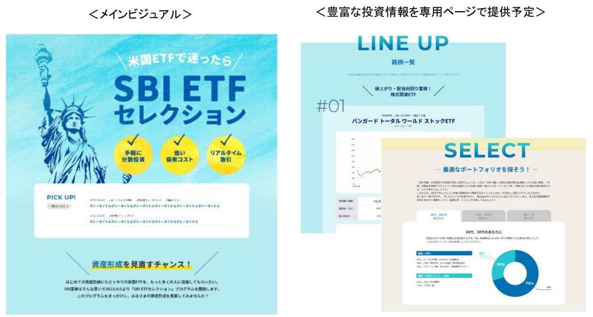 ■「SBI ETFセレクション」告知ページの画面イメージ
