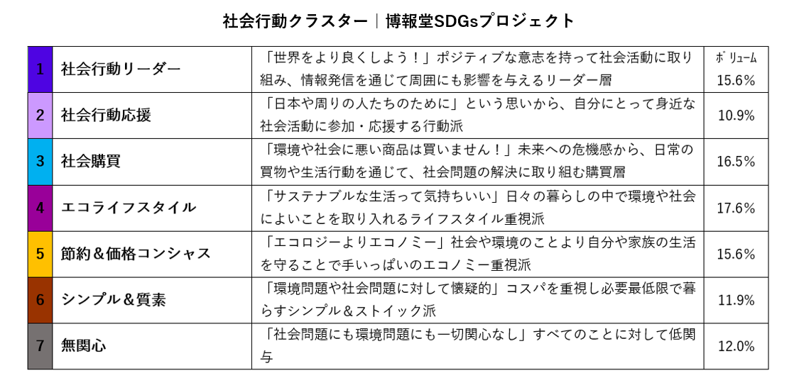 博報堂SDGsプロジェクト、社会課題や環境問題に対する意識・行動で生活者を分類した「社会行動クラスター」を開発