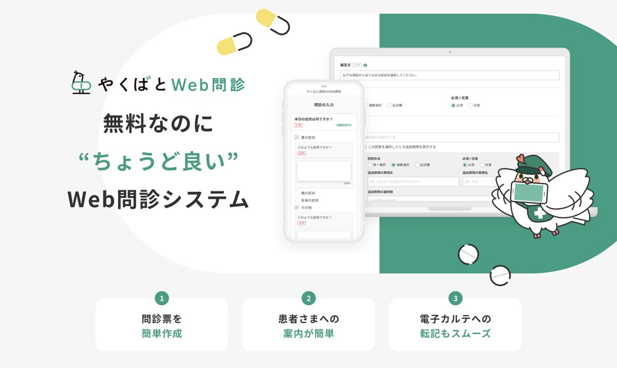 クリニックのDX推進に向けた無料の新サービス「やくばとWeb問診」を提供開始