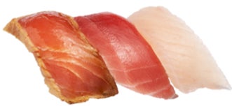 6月19日(日)まで開催している「どどん!と三貫ネタ祭り」は、かっぱ寿司こだわりのネタが一皿で3種の味わいを楽しめる商品をどどん!と6種類ご用意しました。また、ご自宅でお祝い派の皆様にもお楽しみいただけるよう厳選ネタを取りそろえた期間限定のお持ち帰りセットもご用意しております。