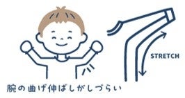 からだが動かしづらいお子さまも服を伸ばしたり無理な動作をせずお着替えが出来ます。